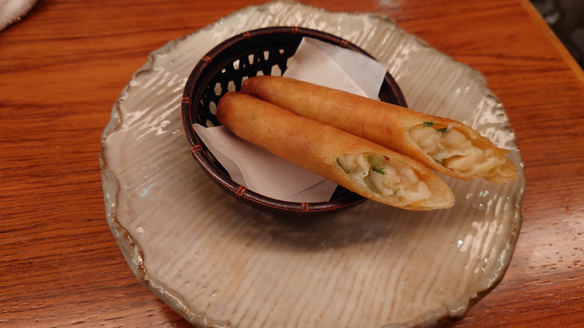 「ぷりぷり海老春巻き」は1本で500円を超えていたので、まずは1本だけ試しに食べてみました。